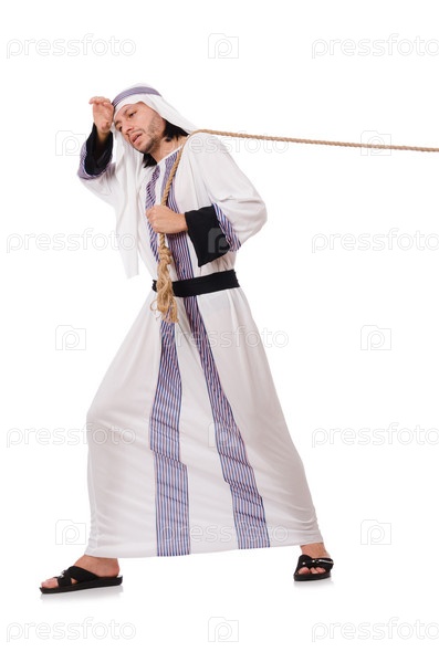 Араб тянет канат на белом фоне
