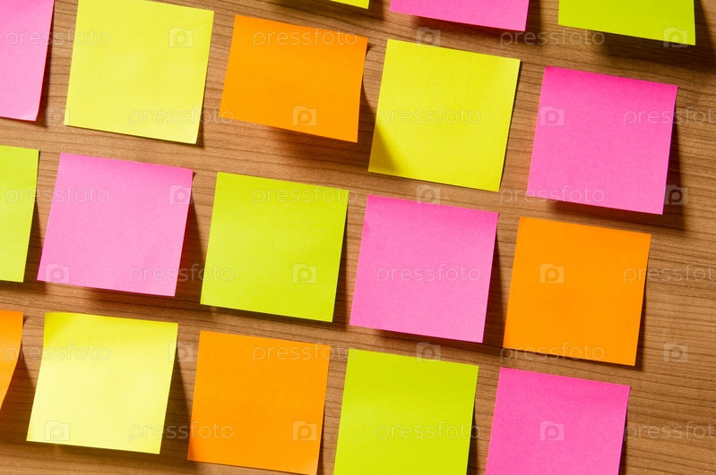Много стикеров на деревянной поверхности