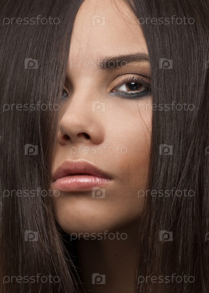 Крупным планом молодая красивая женщина с длинными гладкими волосами