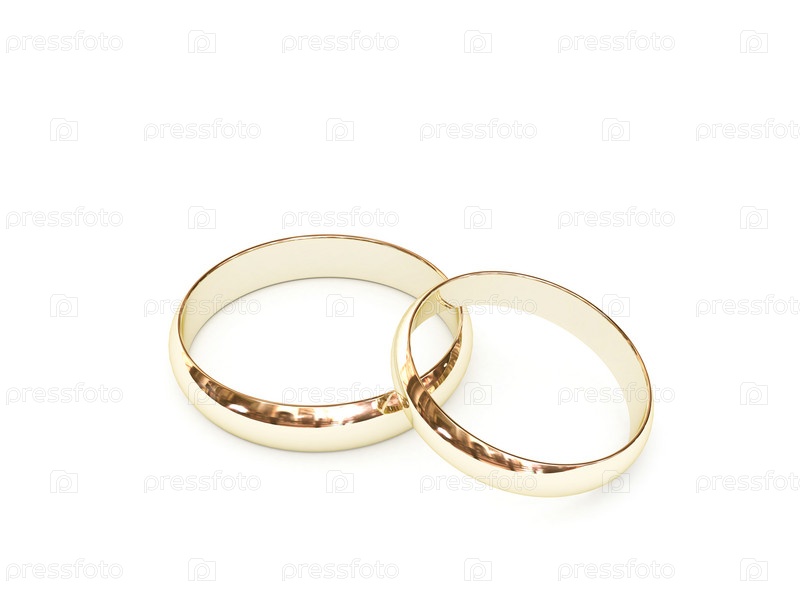 Золотые обручальные кольца на белом фоне. 3D изображение высокого разрешения