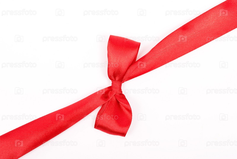 Красная лента с бантом на белом фоне