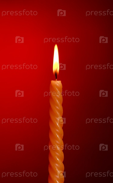 Горящая свеча на красном фоне