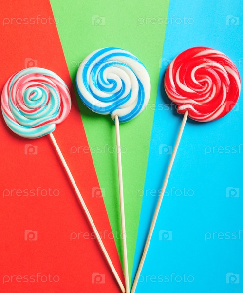 Яркие леденцы на цветном фоне