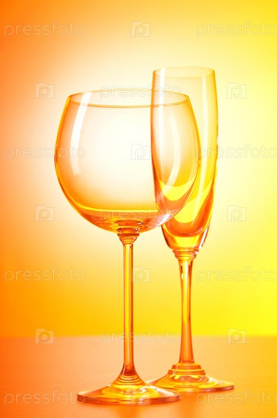 Пустые бокалы на оранжевом фоне