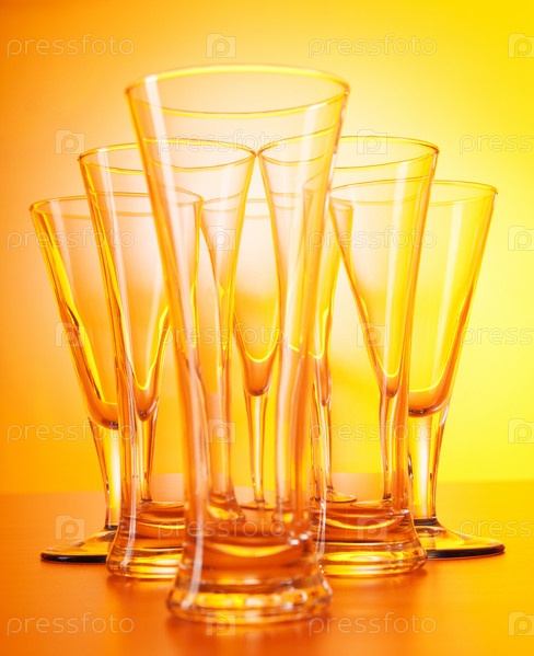 Пустые бокалы на оранжевом фоне