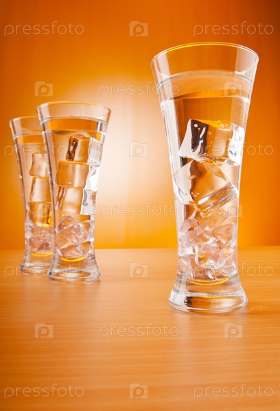 Бокалы с водой на оранжевом фоне