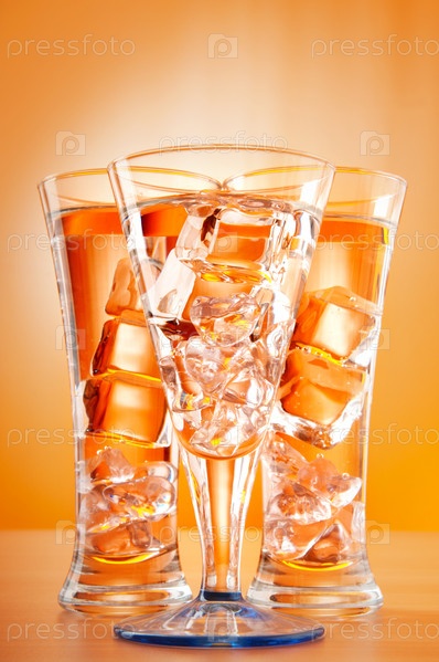 Бокалы с водой на оранжевом фоне