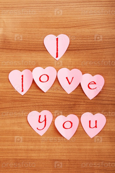 Стикеры в виде сердца на деревянной стене