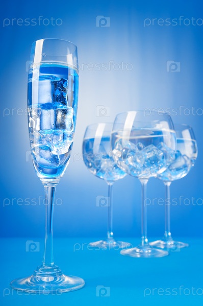 Бокалы с водой на синем фоне