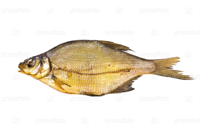 Копченый лещ на белом фоне
