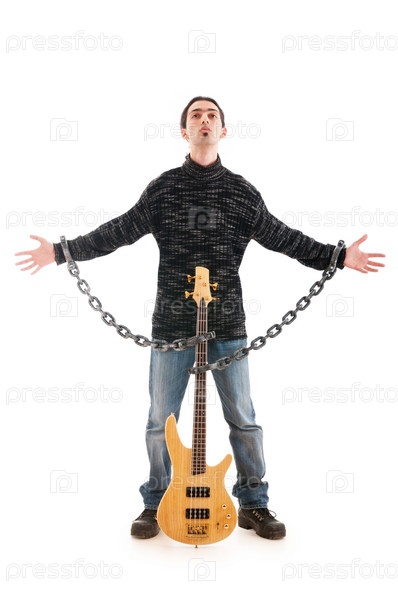 Гитарист позирует перед камерой