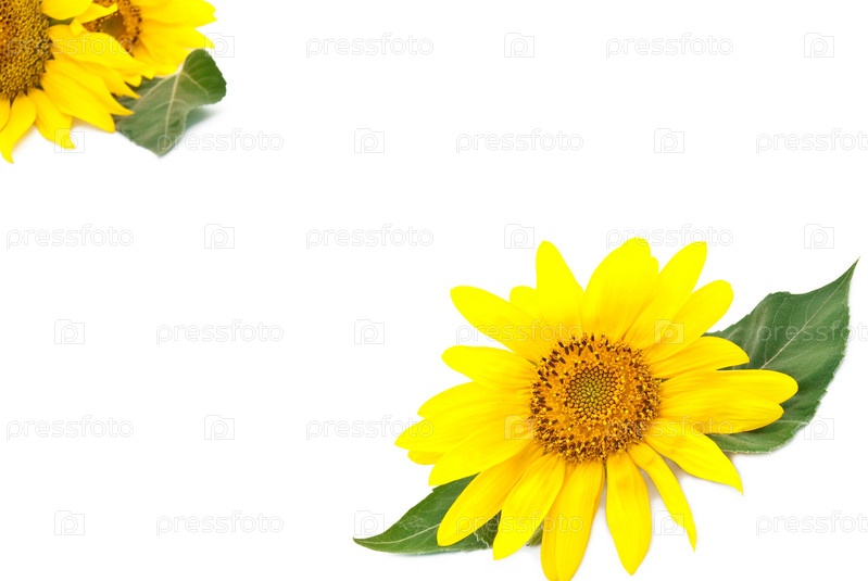 Яркий молодой подсолнечник на белом фоне