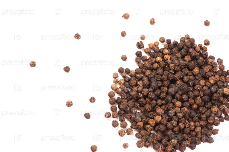 Черный перец горощком на белом фоне
