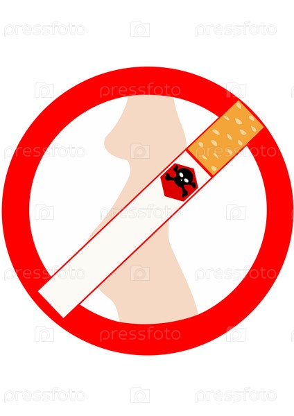 Предупреждающий знак о вреде курения на белом фоне
