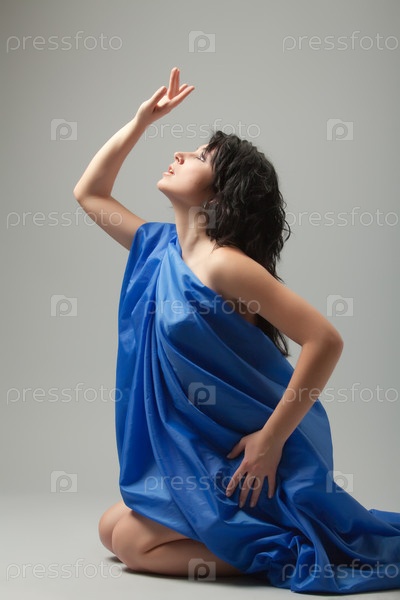 Девушка, завернутая в синюю ткань