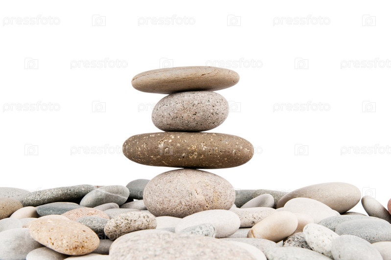 Круглые камни, сложенные друга на друга на белом фоне