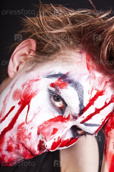 Портрет мима с окровавленными фекалиями вблизи