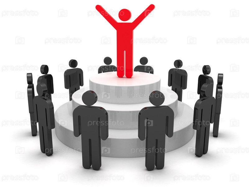 Векторное изображение людей. Лидер с пьедестала говорит группе людей