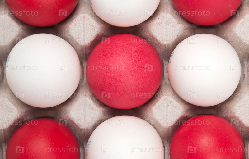 Белые и красные куриные яйца