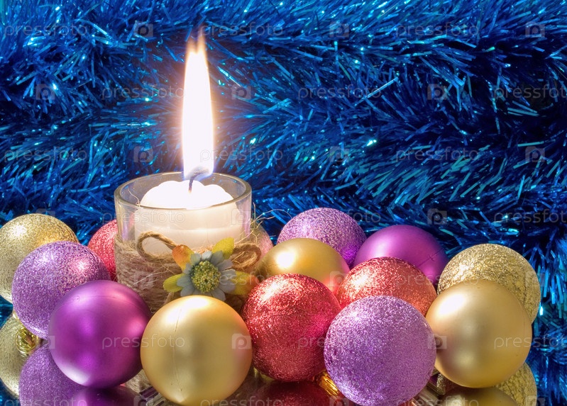 Свечи и рождественские шары находятся в зеркале