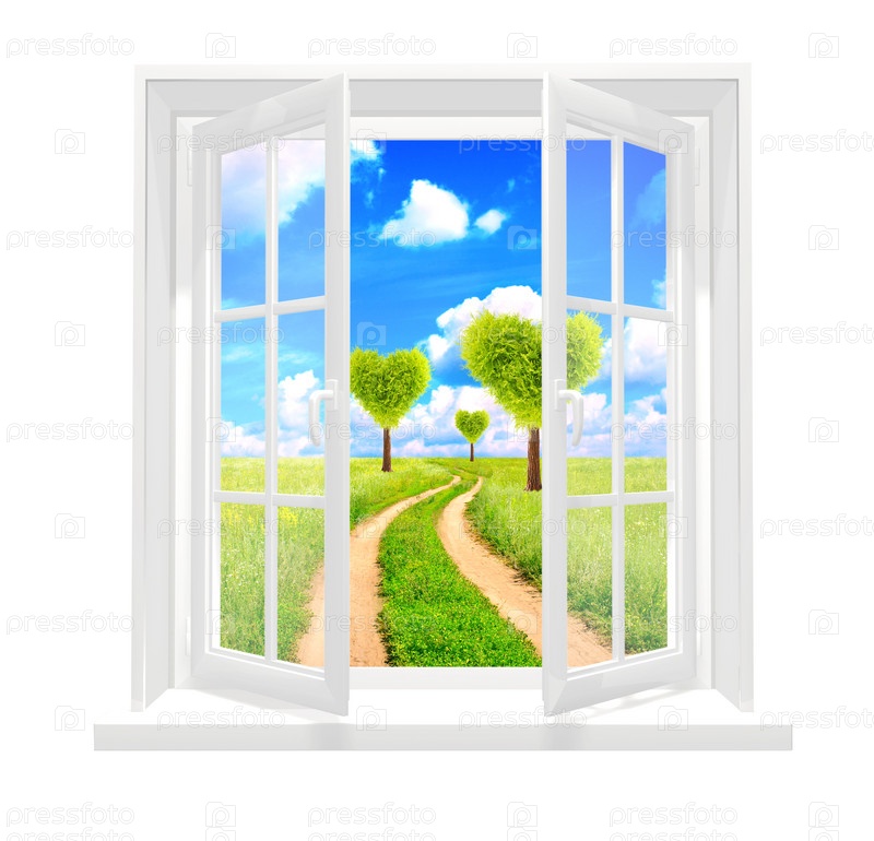 Окно и деревья в форме сердца
