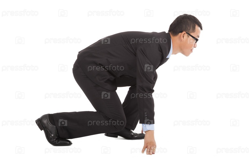 Бизнесмен стоит на колене
