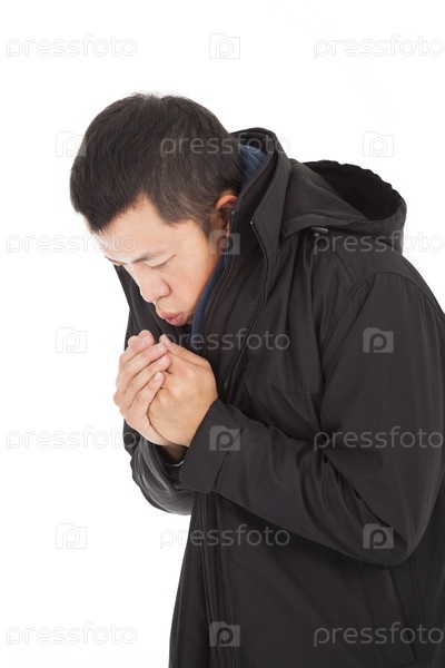 Замерзший мужчина отогревает руки