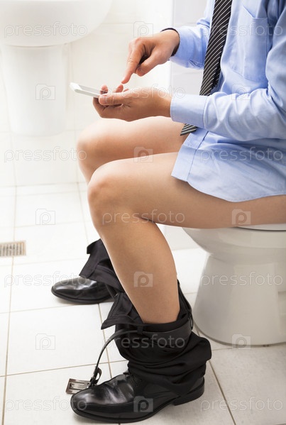 Деловой человек с телефоном в туалете