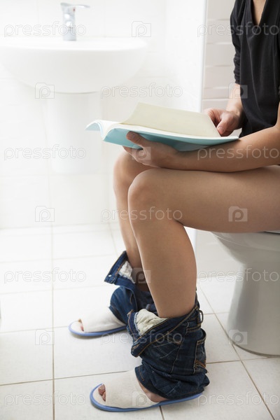 Мужчина читает книгу на унитазе