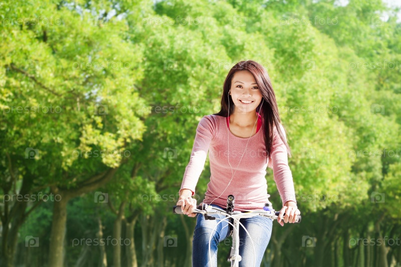 Молодая женщина в парке на велосипеде