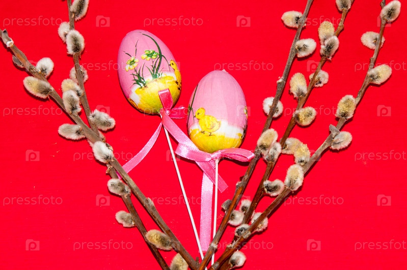 Пасхальные яйца с веточкой вербы