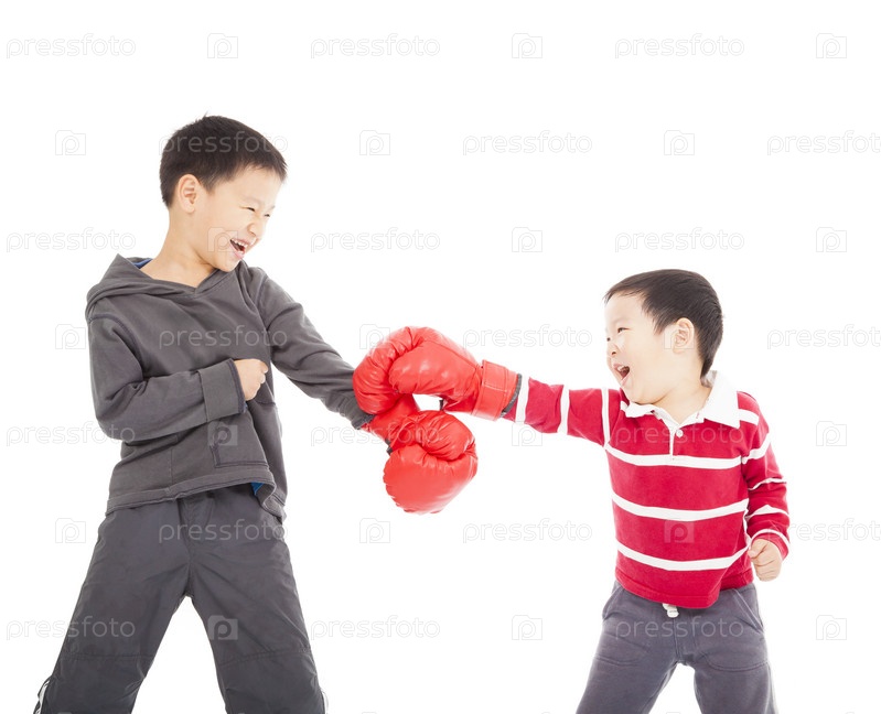 Два мальчика дерутся боксерскими перчатками