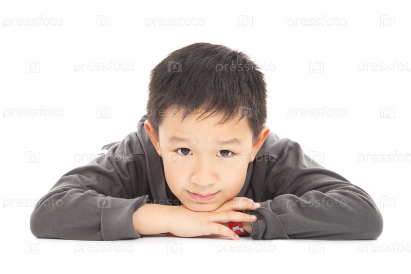 Улыбающийся мальчик лежит на полу