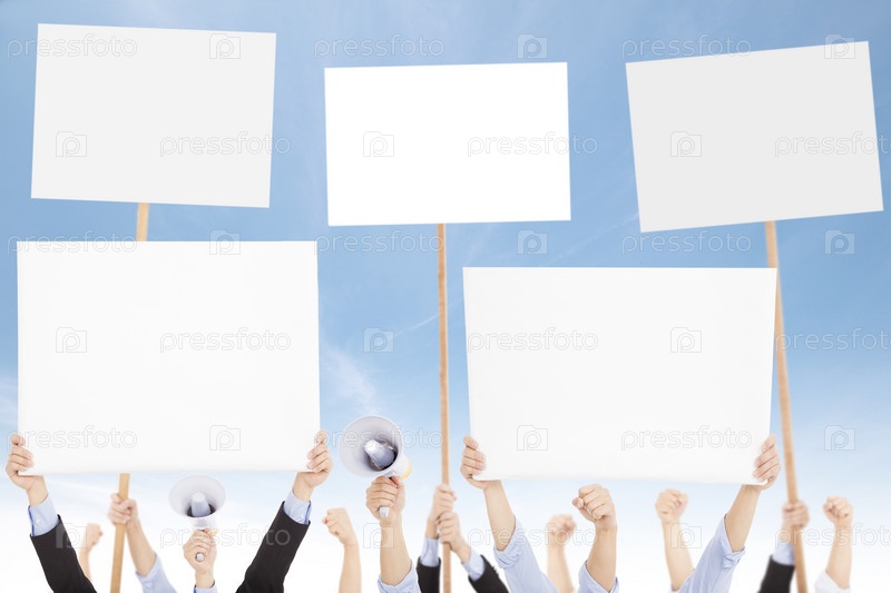 Протестующие с баннерами и мегафонами