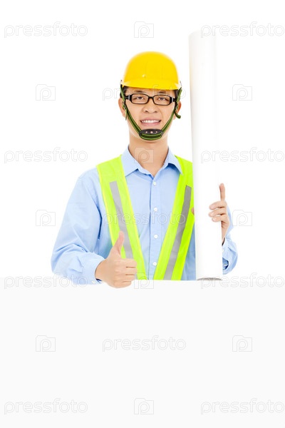 Рабочий с баннером