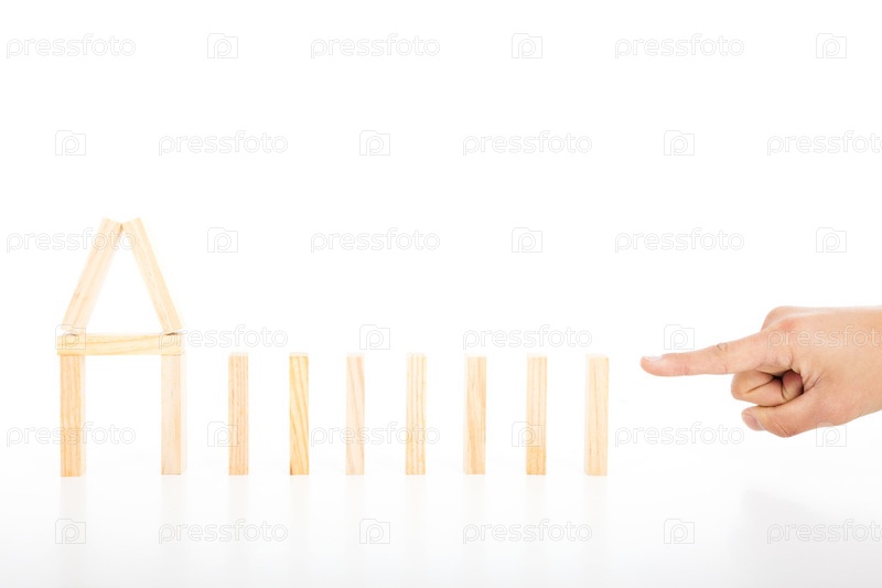 Палец толкает домино