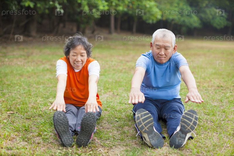 Пожилая пара занимается фитнесом
