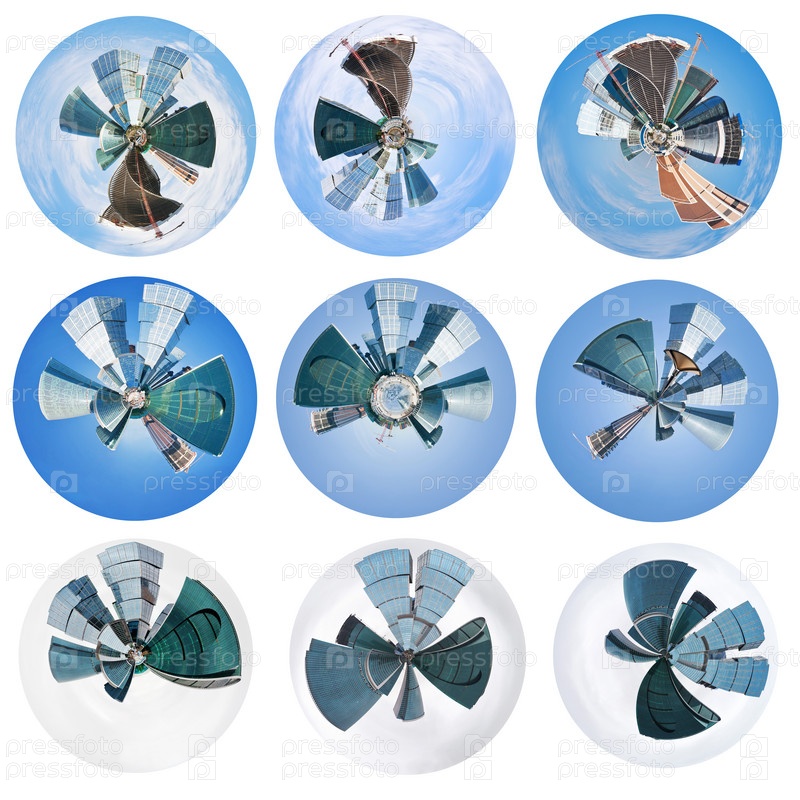 Сферические виды небоскребов города Москва