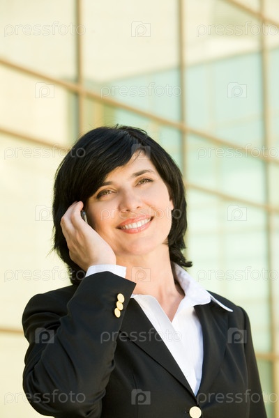 Портрет красивого бизнес-лидера, разговаривающего по мобильному телефону с улыбкой