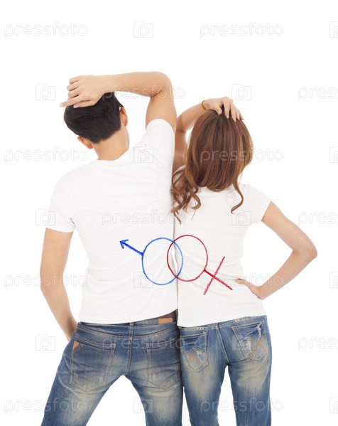 Пара с символами мужественности и женственности на спинах