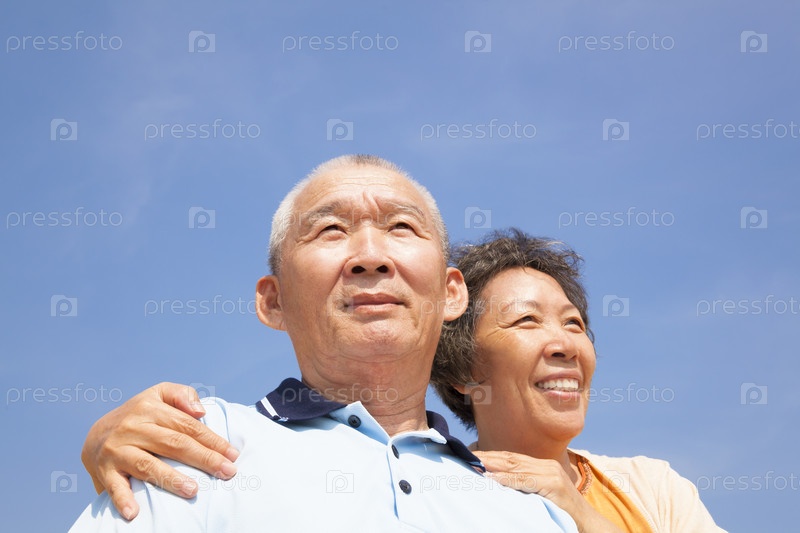 Пожилая пара на фоне неба