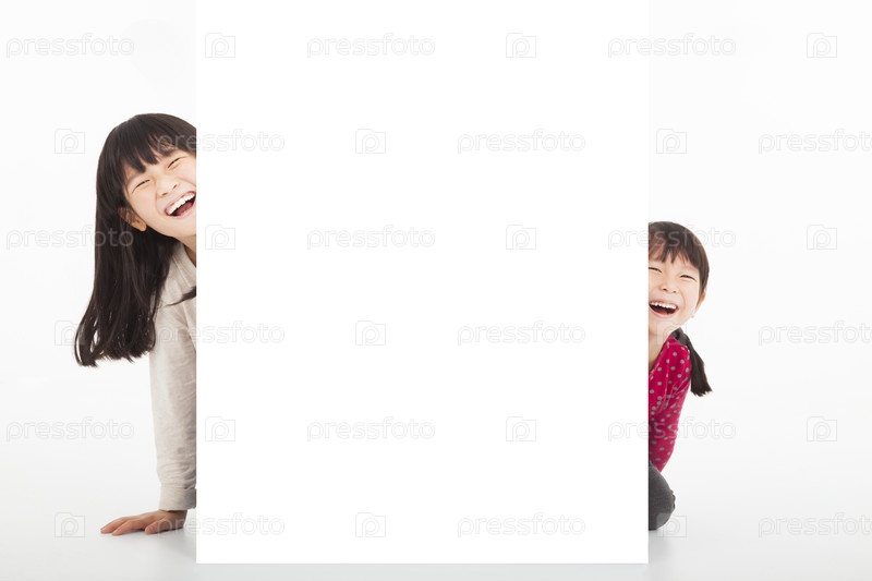 Счастливые девочки с баннером