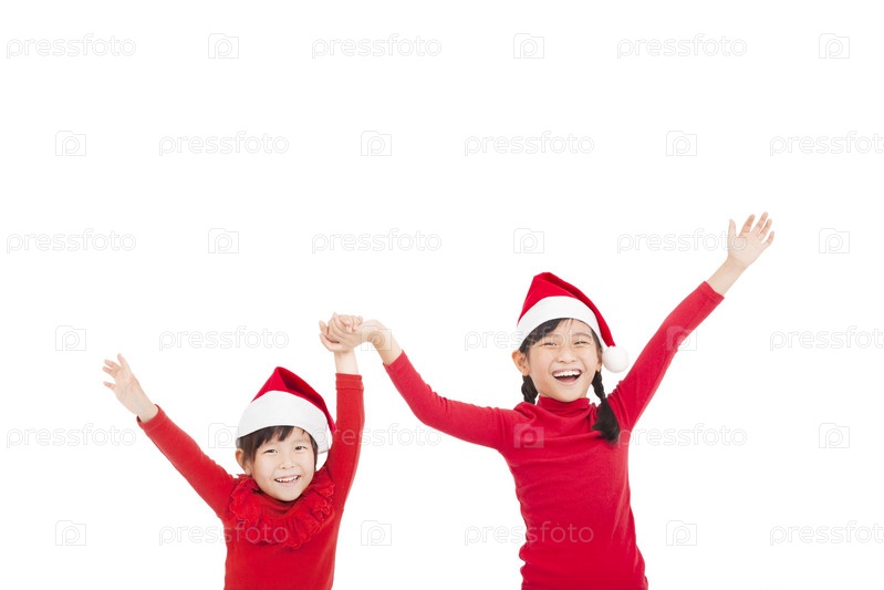 Счастливые девочки в рождественских колпаках