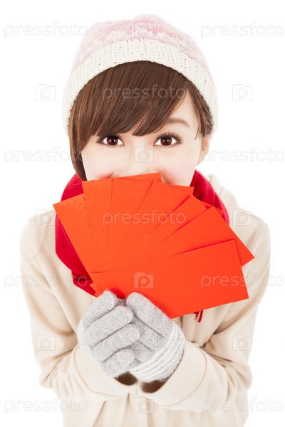 Азиатская девушка с красными карточками