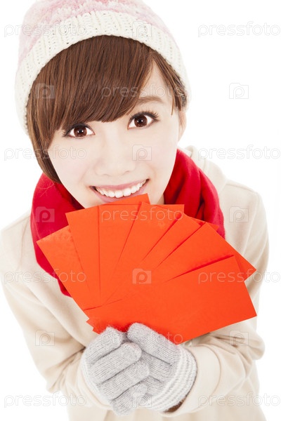 Азиатская девушка с красными карточками