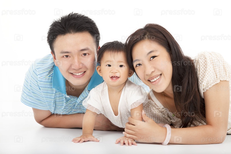 Счастливая семья, изолированная на белом