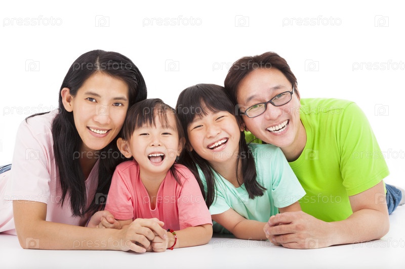Счастливая азиатская семья, изолированная на белом фоне