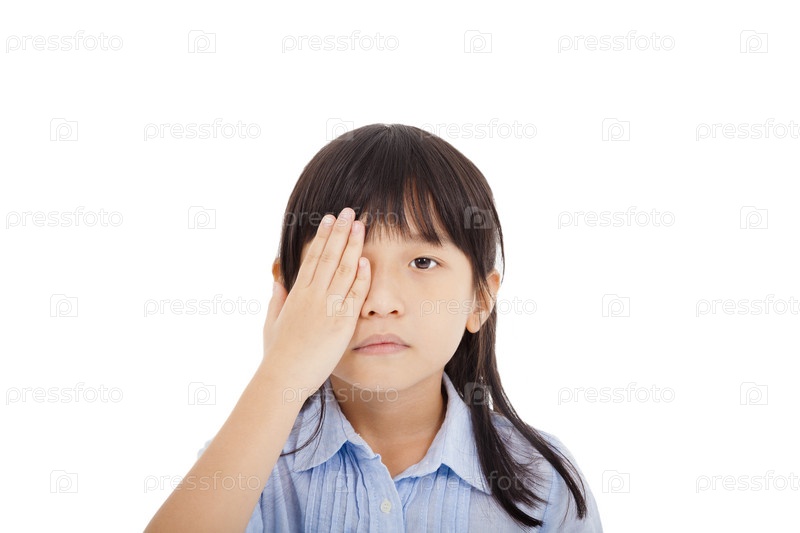 Маленькая девочка закрывает один глаз
