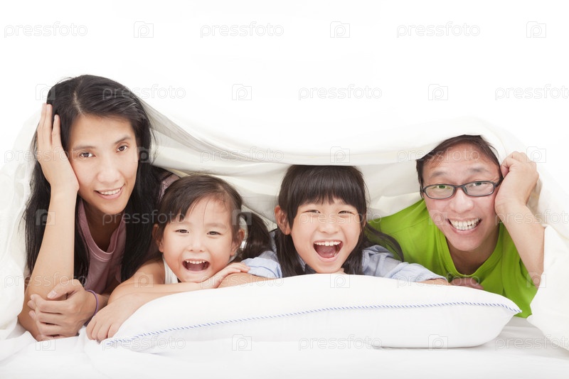 Счастливая семья на кровати