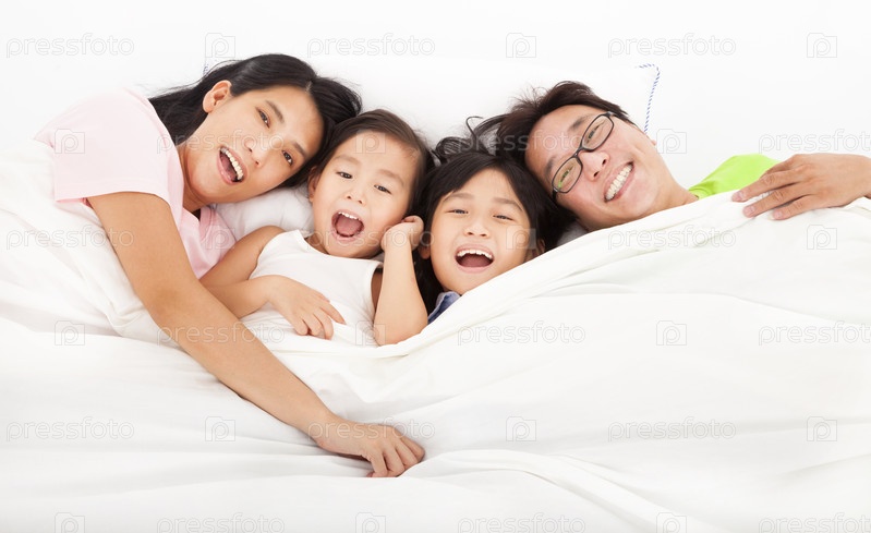 Счастливая семья на кровати